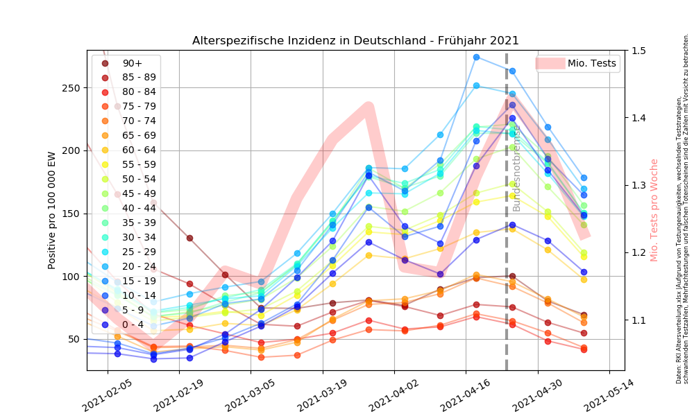 | 17:27, 14. Mai 2021 | Altersspezifische Inzidenz gesamt.png (Datei) | 181 KB | Thomas | Neue Daten. Markierung "Änderung der Testkriterien" entfernt. Da hat sich seitdem eh sehr viel geändert. | 4 | |