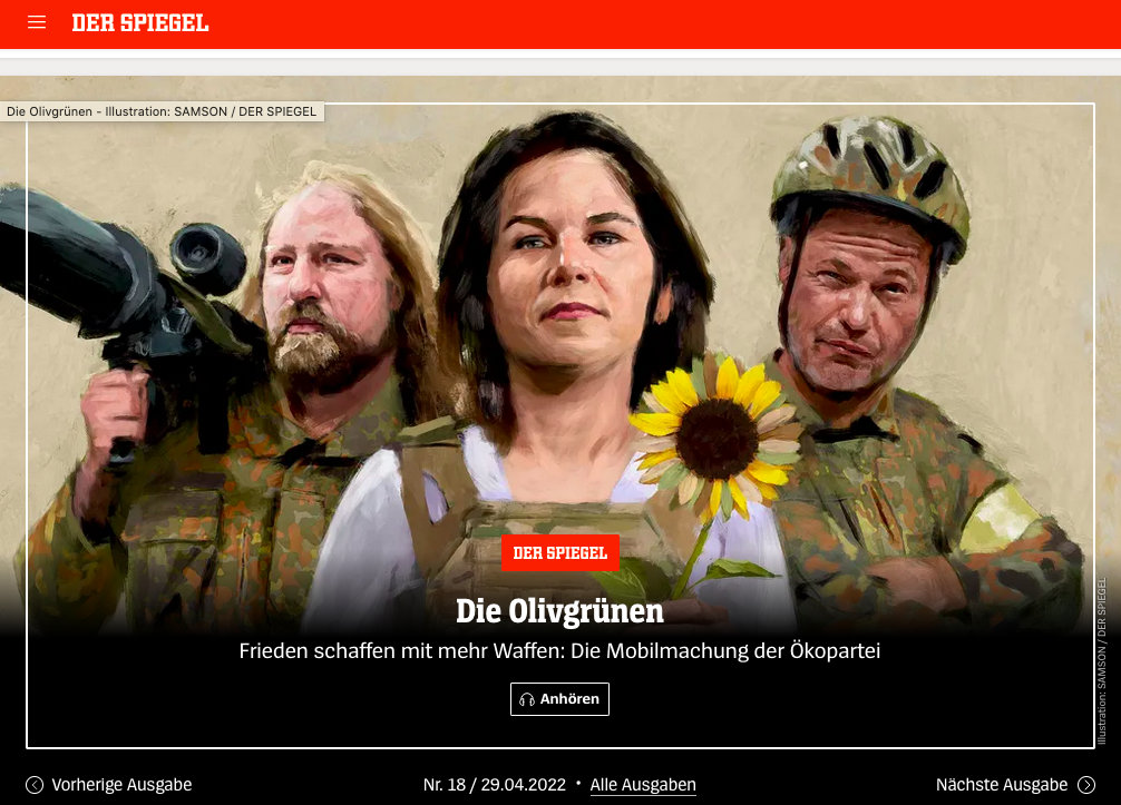 | 03:27, 14. Dez. 2024 | Die Olivgrünen Der Spiegel archive.ph dbtUX.png (Datei) | 963 KB | FreeW | ⭕⭕⭕ 29.04.22 | Spiegel: »Von friedensbewegten Idealisten zu Panzerfans | Die Olivgrünen« »Baerbock, Habeck, Hofreiter und ihre Partei wollen der Ukraine schwere Waffen liefern. So treiben sie Kanzler Scholz vo… | 1 | |