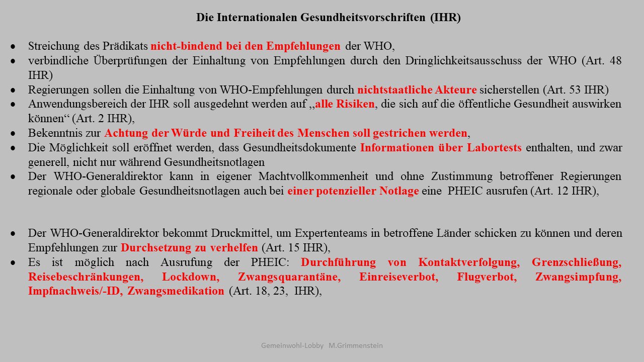 | 19:42, 16. Jun. 2023 | Internationale Gesundheitsvorschriften IHR GemeinWohlLobby.jpg (Datei) | 165 KB | FreeW | Übersicht der GemeinWohlLobby über die Internationalen Gesundheitsvorschriften (IHR) | 1 | |