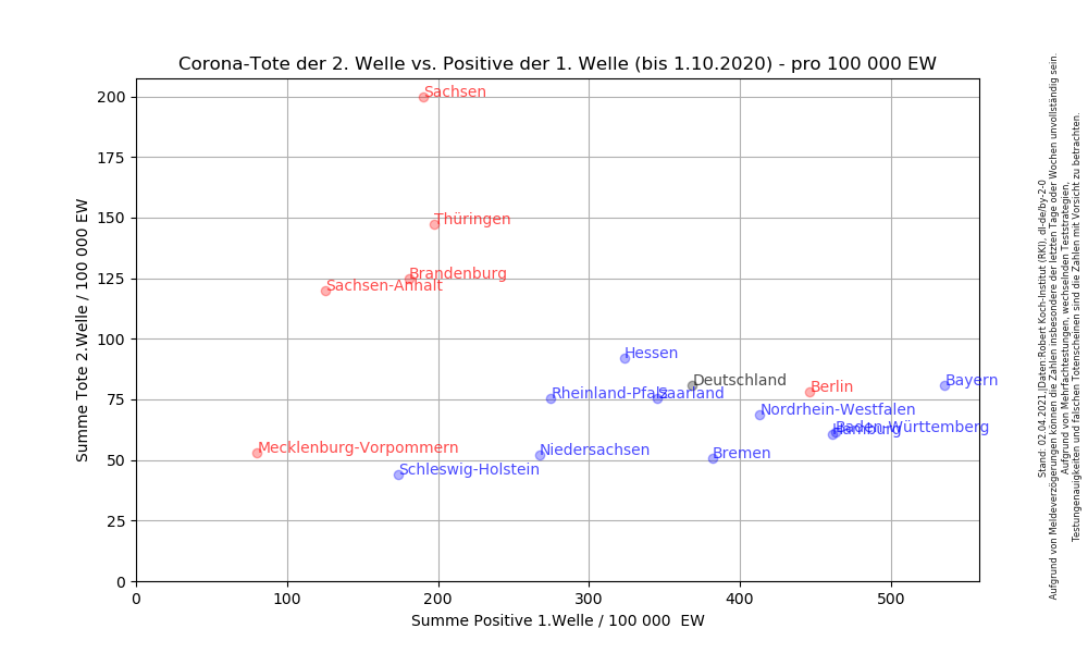 | 12:24, 4. Apr. 2021 | Scatter Tote Welle2 vs Positive Welle1.png (Datei) | 78 KB | Thomas | Korrigiertes Diagramm. Fallzahlen_Kum_Tab.xlsx hat anscheinend einen Fehler. Dieses Diagramm ist aus den Dashboarddaten erzeugt. Diese enthalten zwar zeitliche Fehler in den Sterbezahlen, aber für die Summenbetrachtungen scheinen die Werte ausreichend… | 2 | |