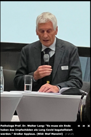 | 22:57, 12. Nov. 2023 | Pathologe Prof. Dr. Walter Lang 2. Corona-Symposium Bundestag kurzelinks.de-x3ji.png (Datei) | 401 KB | FreeW | Pathologe Prof. Dr. Walter Lang im Rahmen des [https://www.stattzeitung.org/artikel-lesen/2023-11-11-sucharit-bhakdi-spricht-im-bundestag.html 2. Corona-Symposiums im Deutschen Bundestag] (s. Bild-Nr. 7) | 1 | |