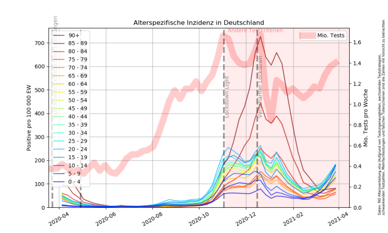 | 10:46, 6. Mär. 2021 | 1.000 × 600 (183 KB) | Thomas (Diskussion | Beiträge) | Aktualisierte Daten. Man sieht, wie letzten Sommer einen Anstieg der Inzidenz bei den Jüngeren parallel zum Anstieg der Testtzahlen. | ||