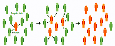 - Grundimmunität: Das ist der einzige Faktor, der festgelegt ist und zwar auf Null. Damit bezieht sich die Basisreproduktionszahl ausschließlich auf Ausbrüche von entweder unbekannten Erregern oder in Bevölkerungen, die noch keinen Kontakt mit diesem hatten. Zudem ist es geradezu unvermeidlich, dass diese Rahmenbedingung im Verlaufe des Ausbruchs verschwindet, wenn nicht alle Infizierten auch gleich sterben.